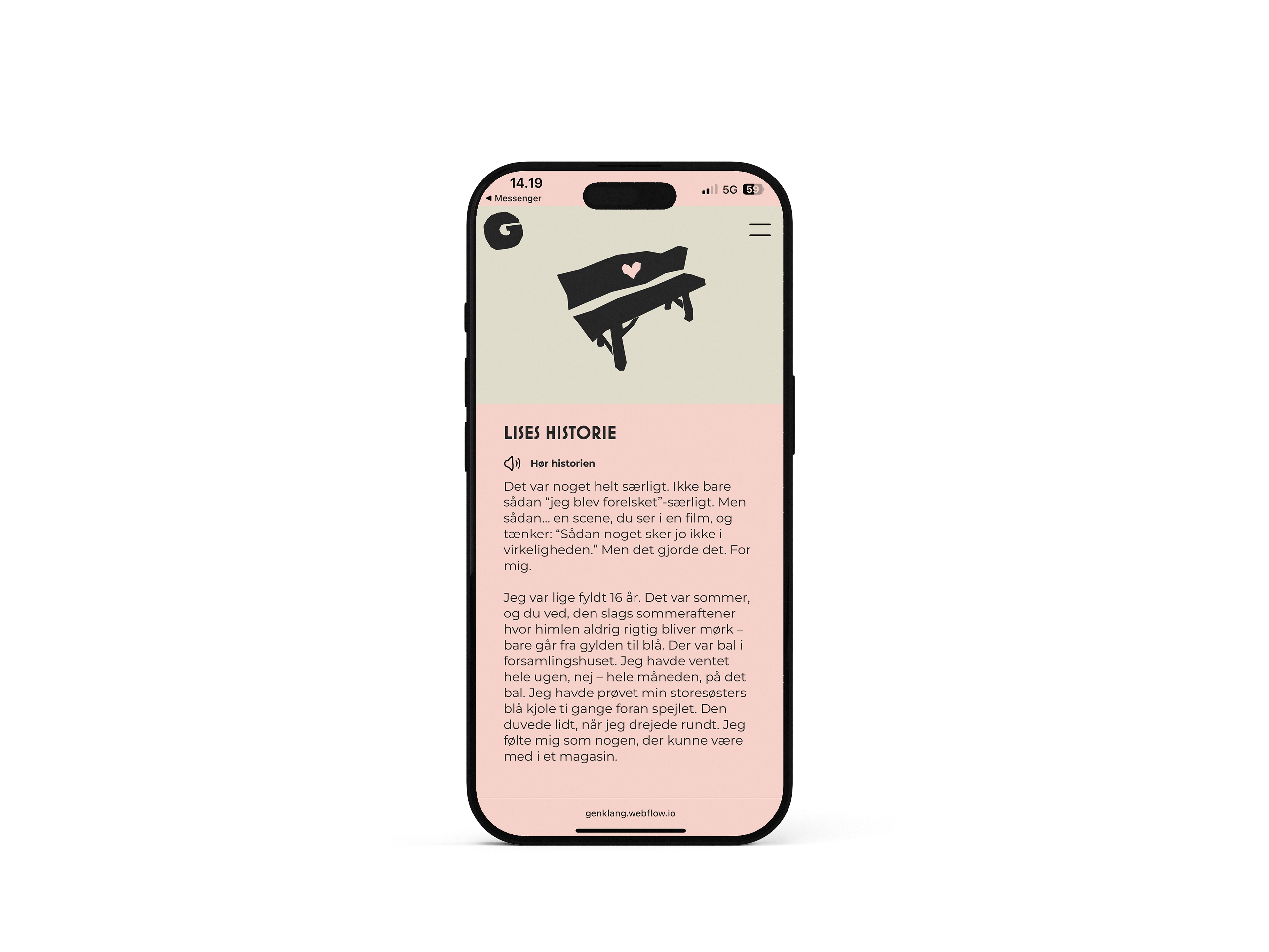 Genklang is a storytelling platform that connects two people from different generations through shared life experiences. For each topic - like "first love" -an older and a younger person each share their personal story. These are published side by side on the website.